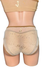 Questo slip GEMINI unisce i due strati di mesh e lycra nella parte centrale, offrendo una combinazione unica di comfort e stile. Il design particolare dà un effetto di trasparenza con punti luce su retina carne, rendendolo adatto sia per il pole sport che per il pole exotic. Una scelta perfetta per un look accattivante e alla moda.
