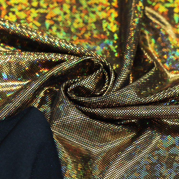 Realizzato in tessuto elasticizzato nero con riflessi boreali e oro, avvolge la silhouette offrendo comfort, sostegno e massima liberta durante la performance.